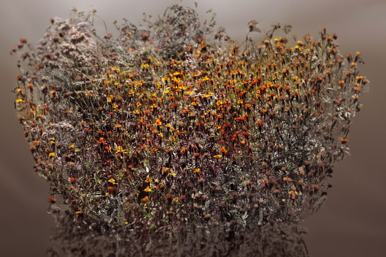 A tapestry of flowers. Reality is a complex network of interconnected elements. The ambition to “tell it all” is a naïve one. It is impossible to entirely define the vast spectrum that composes it. All we are granted is to observe it from a single point of view. Heisenberg’s uncertainty principle reminds us of something essential: it is not possible to determine both the speed and the position of a particle at the same time. All we can do is use every mental, cultural, and sensory tool at our disposal to craft a narrative that remains faithful to our perception of reality. The reality I seek to convey is “more than real.”