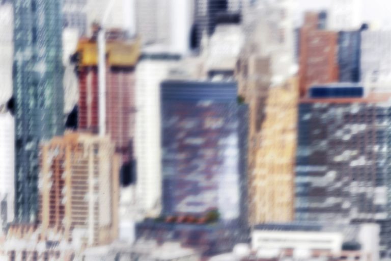 In this photograph taken from a helicopter, the iconic island of Manhattan and its famous skyscrapers are transformed into an imaginary landscape through movement. The aerial image, from a flying mechanical medium, carries a vision full of movement, of color, that creates a new world. Downtown Manhattan as we want to see it, in a new, imaginary way, that makes ourselves identify with our present, with our most intimate emotions.