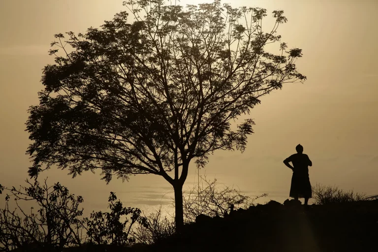 Powerful Sunset is part of the series “Fogo”. This image represents a unique place, a lunar place, where humanity lives a particular sociality and in a full respect relationship with nature. Good and evil defined by the cycles of nature are welcome with acceptance, with pride. This woman in her typical pose is the orchestra conductor of her family, her farm. Her strength, her decision, her protection is revealed by a hyperbolic gesture in a unique landscape. Sunset in this island offers a diffused light, golden, a result from the “dry mist”, from humidity always present in the air.