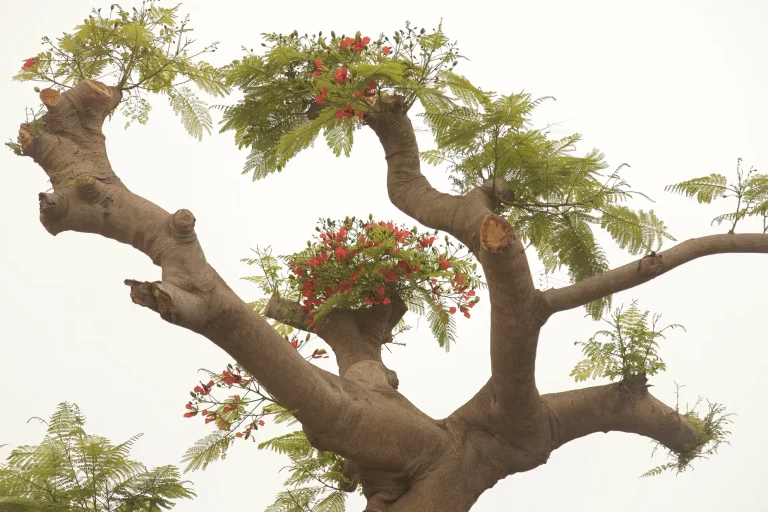 Outside the white sky with light and warm shades. The tree with intricate branches and red flowers that sprout among the sparse tufts of green leaves. It is a perfect form. It gives peace. I hear laughter from the house. It is only a “daily” day, it has a peaceful rhythm, it has no tears, it doesn’t want anything in return. The air is warm, but never suffocating. The sense of pleasure is felt, it becomes concrete. I lift the camera and follow those forms. They are moments of pleasure knowing that Tree of Joy was born. The tree of happiness. Of joy.