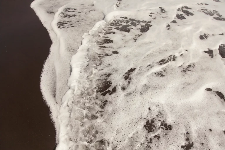 The ocean leaves its pulse behind as an ephemeral trace of sea foam.