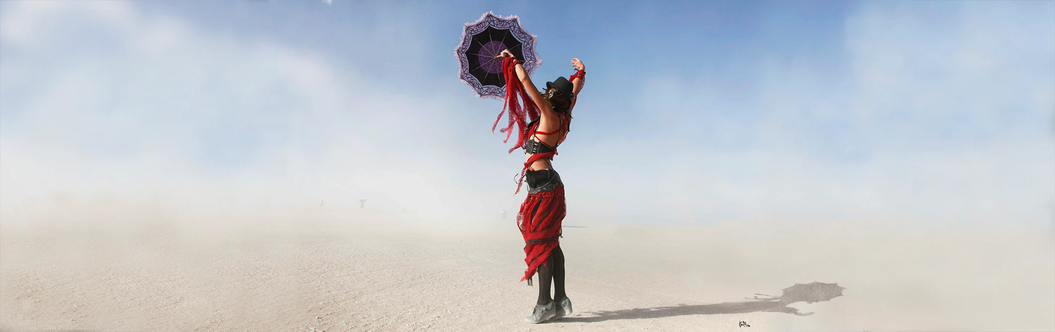 La danza del viento. El movimiento espontáneo de una chica con sombrilla. La luz cálida. La pureza del blanco. La sombra precisa. El espacio de la espontaneidad, de la armonía, de la sensación que dejarse es el fruto de la unión. La obra quiere inspirar la exploración de estos espacios que nos pertenecen y que se encuentran en lo más profundo de nuestro ser. En medio de un desierto. En el centro de nuestra conciencia y de nuestro sentirnos llenos y en paz con nuestro ser.