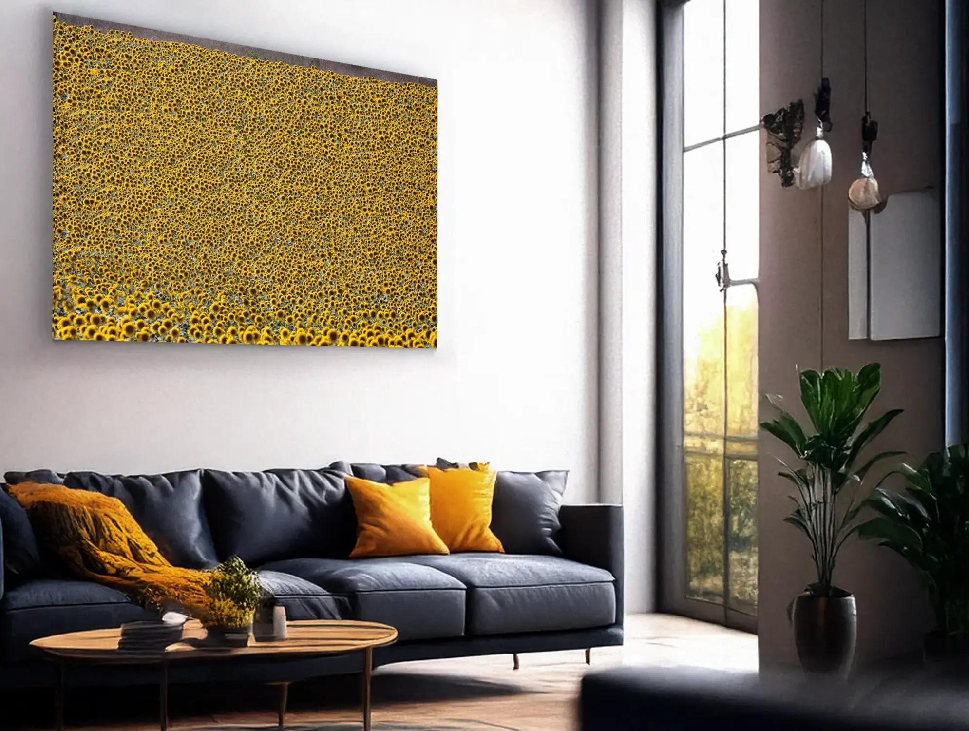 Los girasoles transmiten la vida. Nuestra íntima consistencia, que es nuestra Naturaleza. El contacto visual e íntimo activa una conciencia expandida que transforma la percepción cotidiana. La obra propone una danza de luz y vitalidad donde el movimiento visual y las capas superpuestas generan una experiencia inmersiva, mutable, nunca cerrada. Cada movimiento genera una imagen distinta. Cada instante reformula el conjunto en una experiencia infinita.